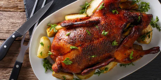 Запечённый гусь в медово-апельсиновой глазури