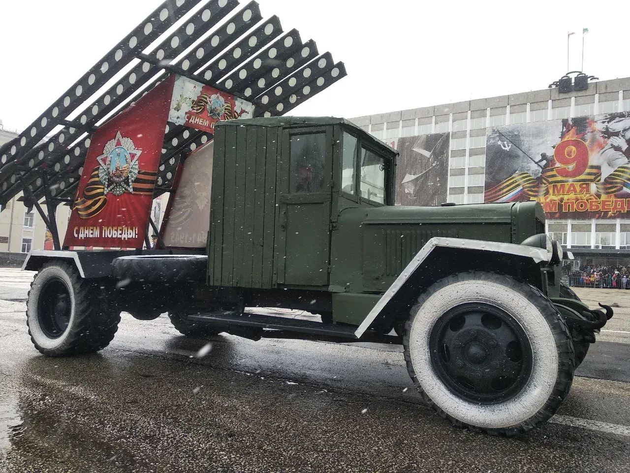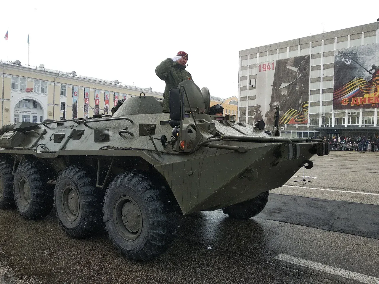 Ни один парад не проходит без легендарной системы залпового огня на базе ЗИС «Катюша», БТР-80, учебные грузовые машины ДОСААФ. По Стефановской площади прошли и проехали все силовые структуры республики, спасатели, пожарные.