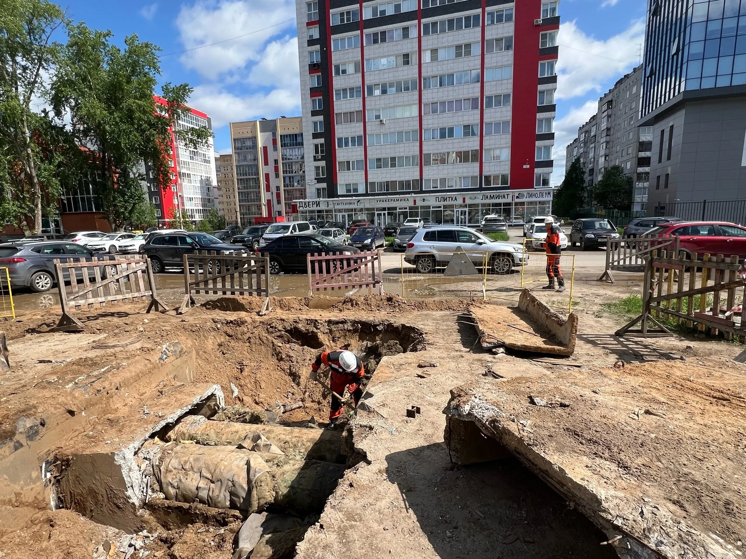 Читатели “Новости Коми” обратили внимание еще на один перекопанный участок в центре города. На этот раз – в непосредственной близости от перекрестка улиц Первомайская и Красных партизан.