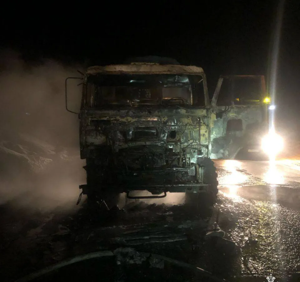 В ведомстве сообщили, что в результате инцидента никто не пострадал. По предварительным данным, причиной возгорания послужила неисправность одной из систем грузовика.