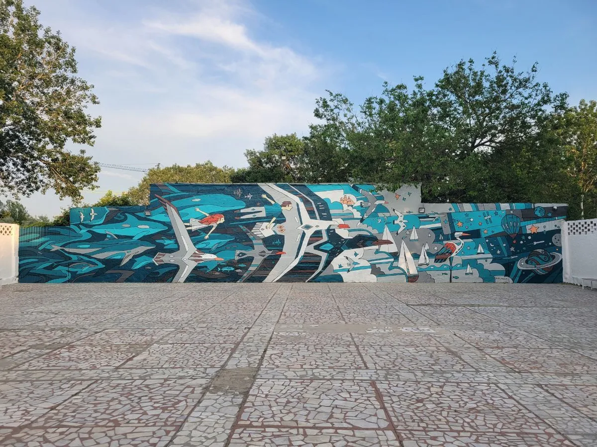 Масштабная роспись символизирует детские мечты и безграничные возможности.