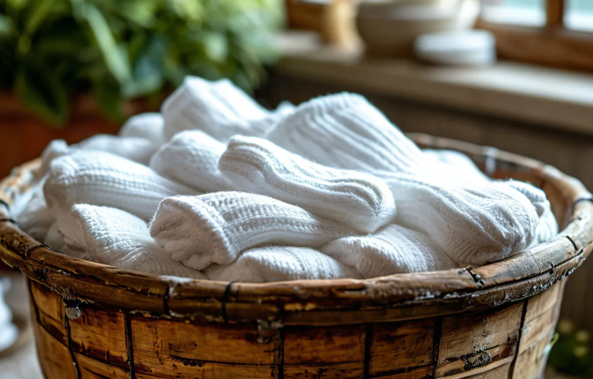 Перед тем как погружать текстиль в очищающий состав, стоит механически удалить основные загрязнения. Речь идёт не о стирке, а о лёгком очищении, которое подготавливает ткань к дальнейшему воздействию. Только после этого носки или другие изделия можно замачивать в специальном растворе, приготовленном из подручных ингредиентов. В его основе — поваренная соль, отбеливающий компонент на основе кислорода (либо лимонная кислота, если хочется натуральный подход), а также немного обычного порошка. Всё это растворяется в тёплой воде — на литр–два жидкости берут 4 ложки соли, 3 ложки отбеливателя или лимонки и пару ложек порошка.