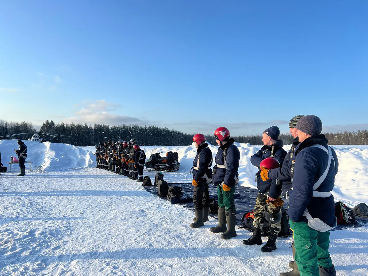 Смотр сил и средств прошел в полевых условиях. На учебном полигоне развернулась показательная тренировка парашютно-десантной службы. 22 бойца из Троицко-Печорского, Койгородского и Ухтинского районов продемонстрировали искусство десантирования с борта вертолета Ми-8. Слаженность движений и четкость выполнения спусков подтвердили: личный состав готов к работе в самых труднодоступных уголках тайги.