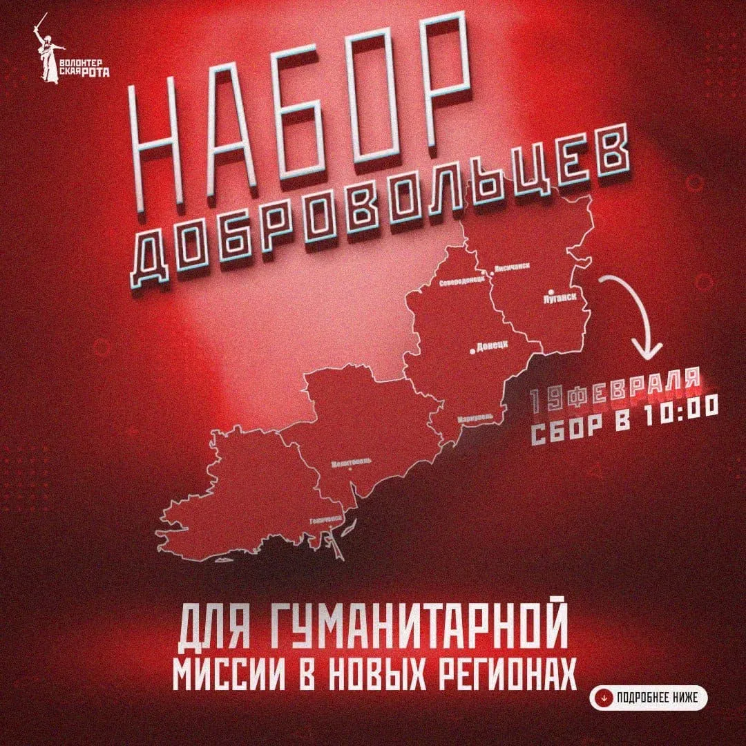 На Донбассе добровольцы будут задействованы на пунктах выдачи гуманитарной помощи, работе в госпиталях, восстановлении объектов инфраструктуры и иных задачах, подразумевающих возвращение новых регионов к мирной жизни.