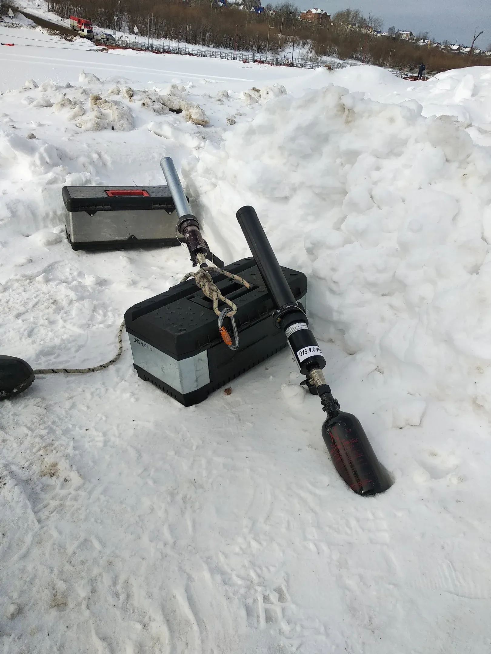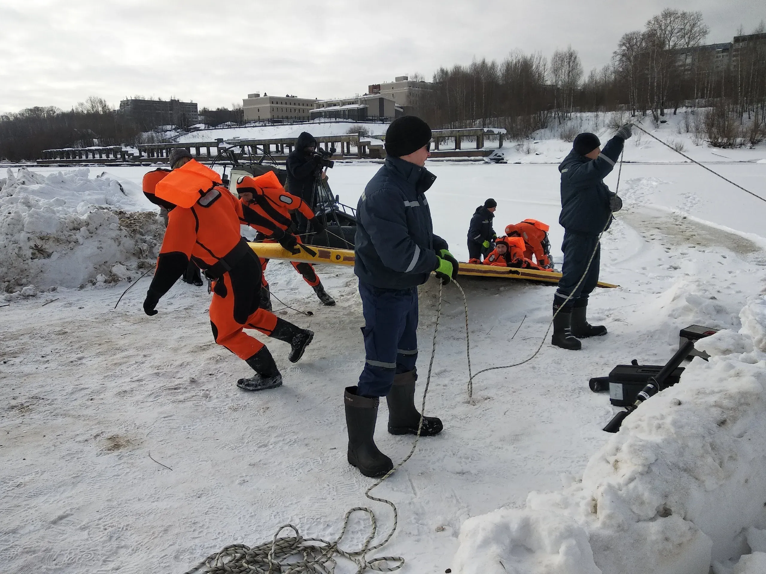 Тут же поступает приказ оборудовать веревочную переправу. Для этого использовали спасательный линемет. Спасательный линемет предназначен для оказания помощи и проведения спасательных операций на воде.