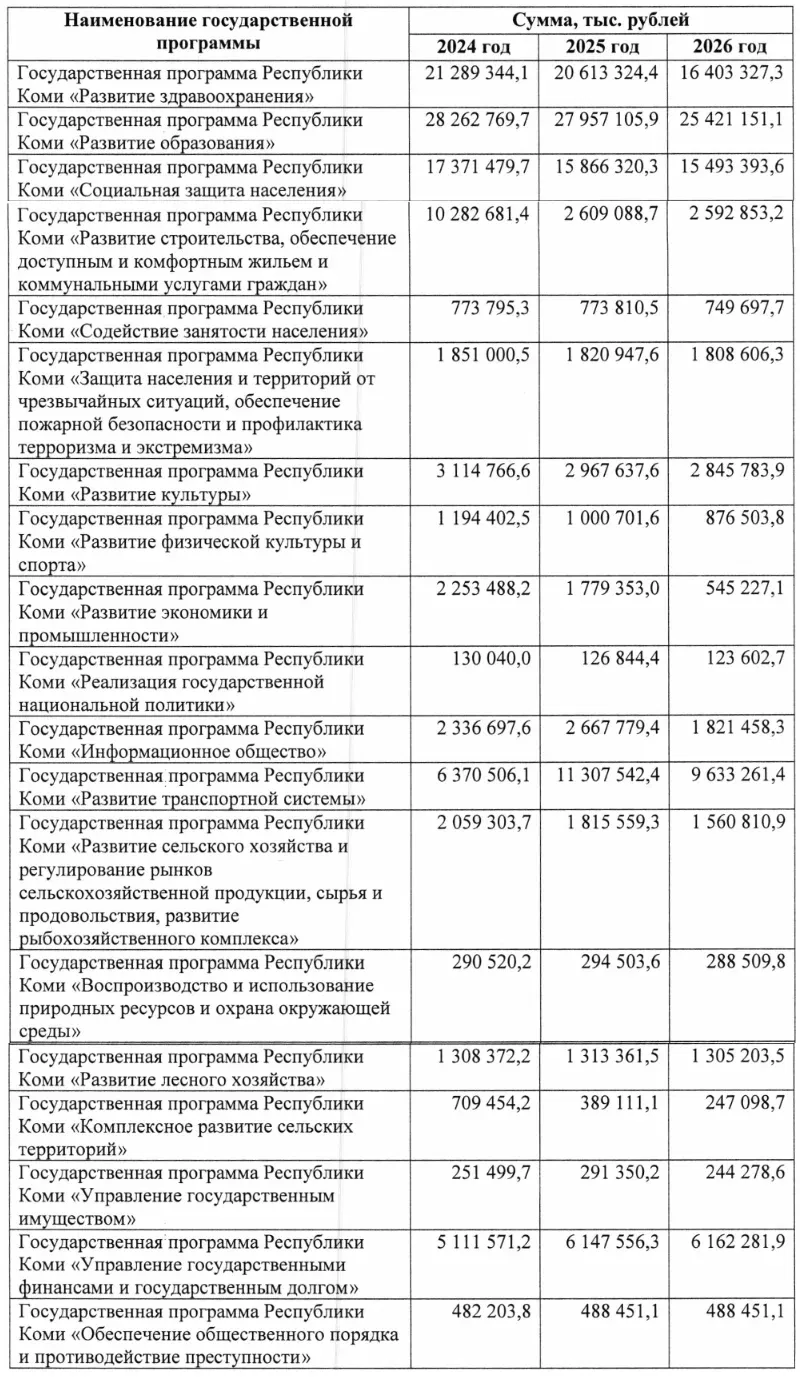 По прогнозам, содержащимся в проекте республиканского бюджета на 2024 год и плановый период 2025-2026 годов, в Республике Коми планируется выделить 105,44 млрд рублей для финансового обеспечения государственных программ. Предполагается, что данный проект закона будет рассмотрен и утвержден депутатами Государственного Совета Коми на ближайшем заседании осенней сессии.