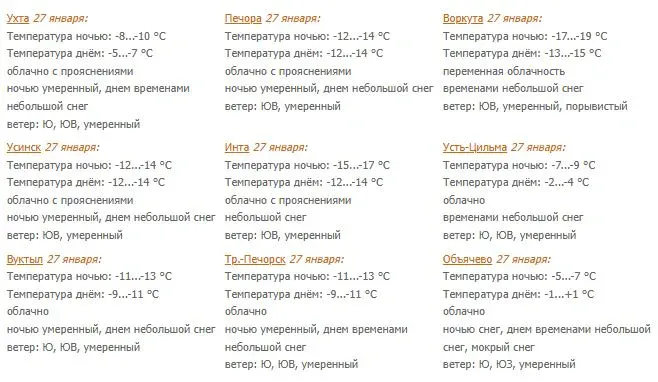 Прогноз на 29 января для всей республики предоставлен Коми ЦГМС.