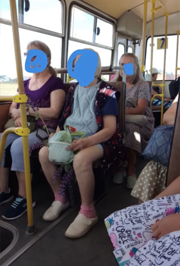 На остановке улица Пермская вошла пожилая бабушка лет 80. Меня сразу смутил ее вид. Одета она была не по погоде - теплая кофта и подгузник. В руках полевые цветы и горшок с геранью. На вопрос, знает ли она куда едет? - полное непонимание. Молчит. Дезориентация, документов нет.