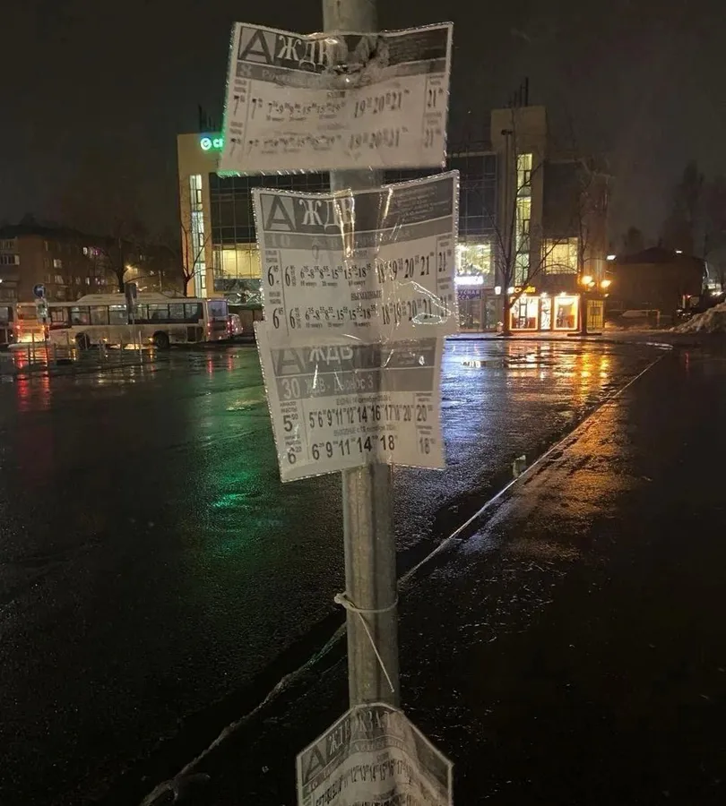 Ситуация на железнодорожном вокзале вызывает волну негодования среди пассажиров. Расписание пригородных автобусов размещено на бумажных листах, расположенных на уличной остановке. В XXI веке такой способ информирования выглядит архаичным и не соответствует современным стандартам обслуживания.