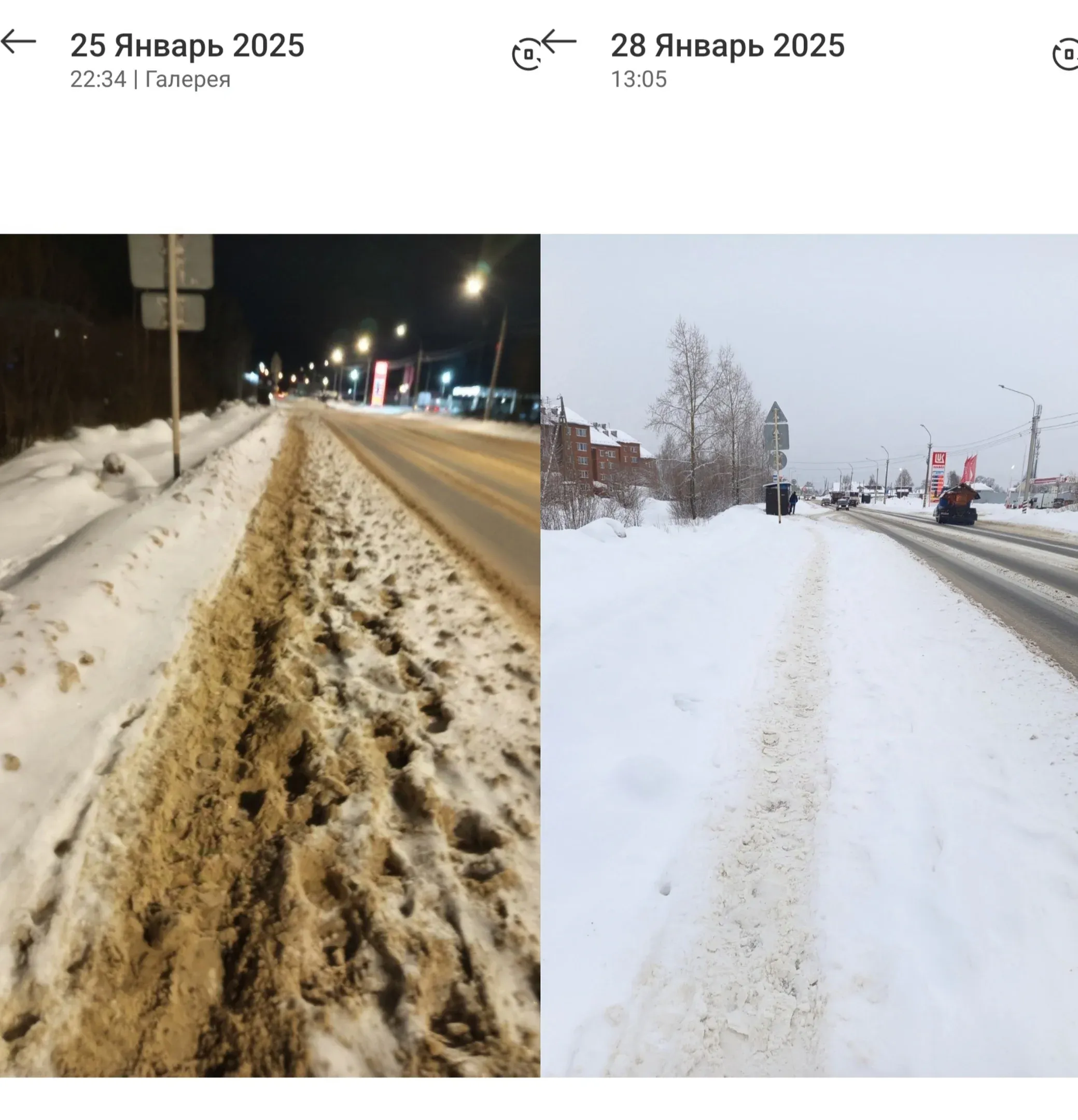 24 января на своем блоге в Телеграме В. Голдин заверил горожан, что в ночь с 24-го на 25-е января будет проведена масштабная уборка и вывоз снега, в том числе и на территории Лесозавода. Впрочем, судя по фотографиям и комментариям жителей, реальность оказалась далекой от обещаний. Вместо тщательно расчищенных тротуаров, которыми гордились бы городские власти, пешеходам приходится пробираться по узким, неровным "собачьим тропам". Водители также сталкиваются с проблемами: заезды к остановкам общественного транспорта остаются неочищенными, а переходы для пешеходов завалены снежными массами.
