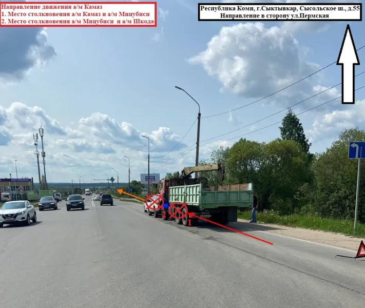 По информации, полученной от МВД по региону, инцидент случился 9 июня в 10: 20 на Сысольском шоссе. Сидевший за рулем грузового автомобиля «КАМАЗ» не соблюдал безопасную дистанцию и врезался в движущийся впереди автомобиль «Мицубиси», что привело к цепной реакции — легковушка столкнулась со «Шкодой».