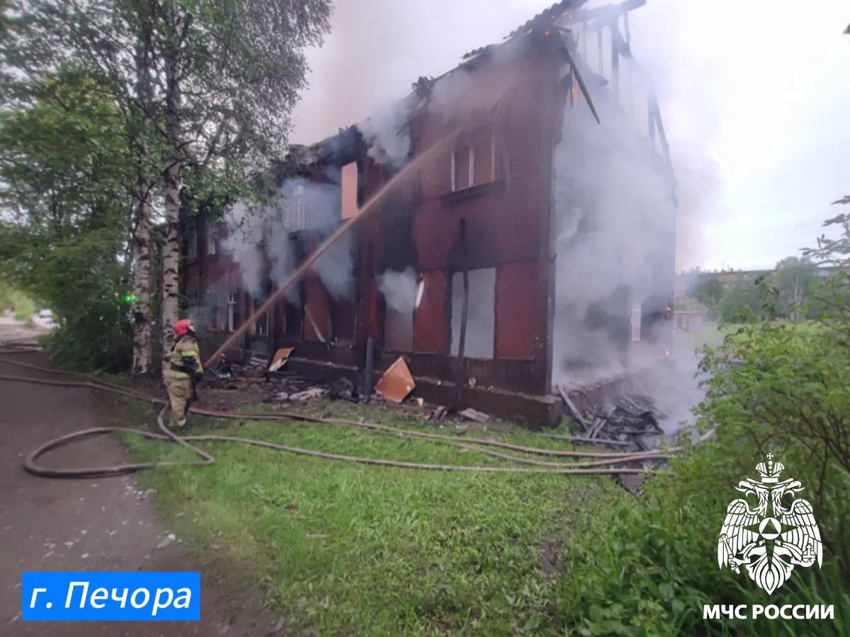 25 июня в Печоре ликвидировали пожар в бесхозном здании площадью 360 м², вызванное, вероятнее всего, неосторожным обращением с огнем.