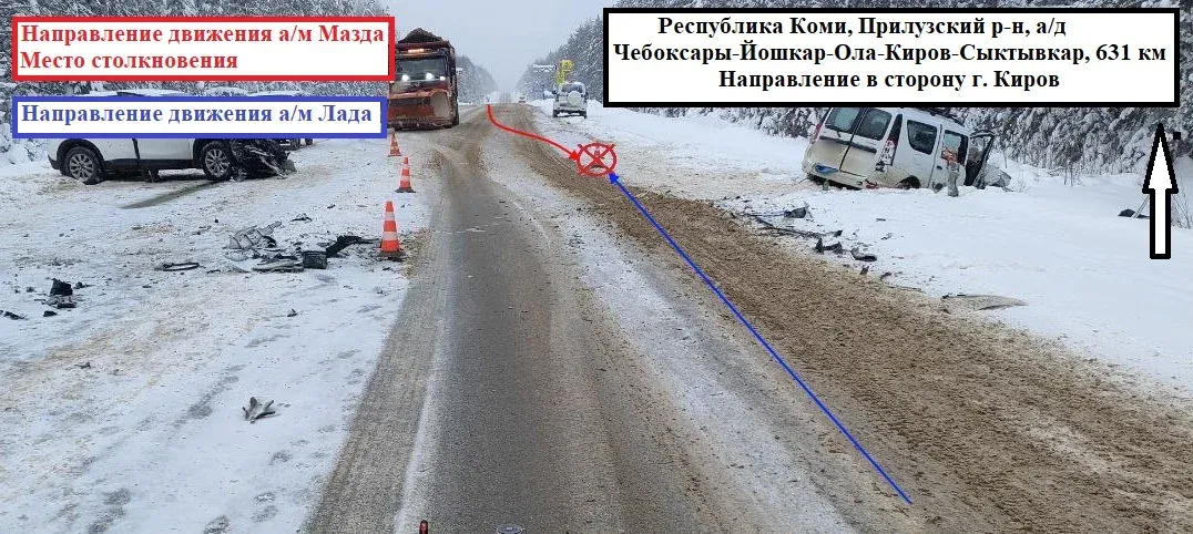 В Прилузском районе водитель Mazda выехал на встречную полосу и протаранил Lada Largus, травмы получили пассажиры обоих автомобилей.