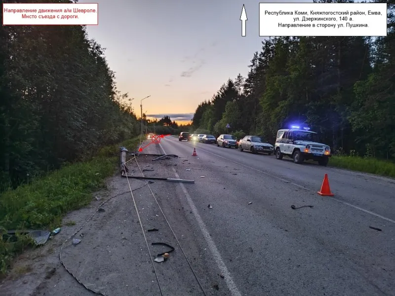 В Коми водитель Chevrolet Lanos снес бетонный столб и сильно пострадал