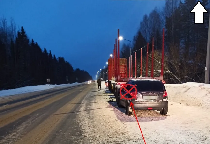 В Корткеросском районе произошла авария с участием автомобиля Hyundai и припаркованного грузовика.
