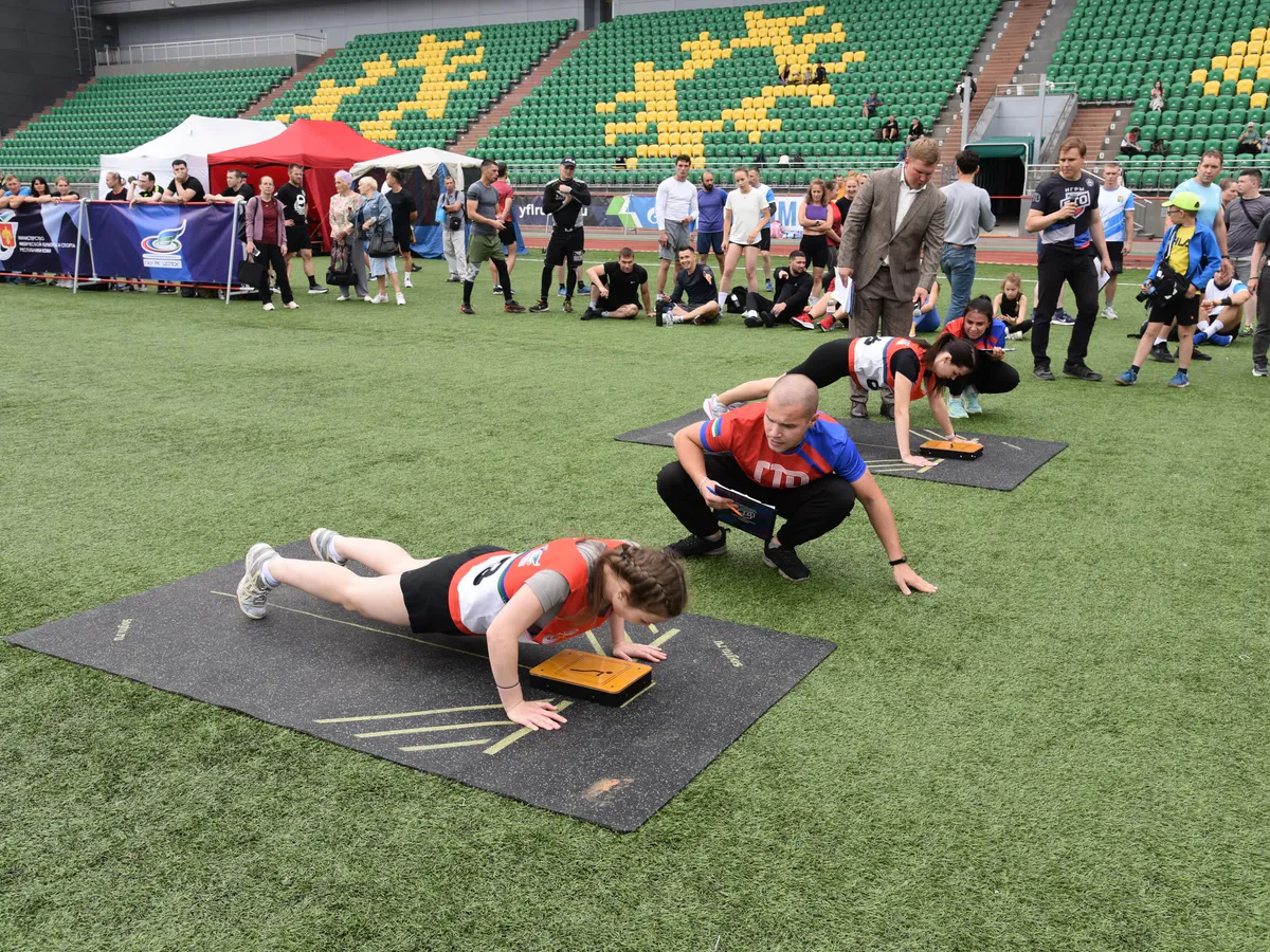 Программа первого дня включала разнообразные испытания: прыжки в длину, отжимания, упражнения с гирями, подъем туловища и подтягивания. Особый интерес вызвали нестандартные дисциплины - челночный бег, жим гантелей, подъем диска и перетягивание каната.