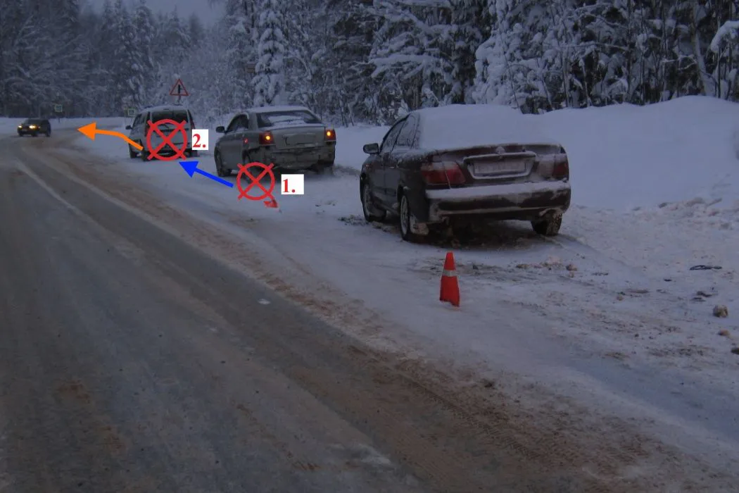 Первый инцидент случился 27 января чуть позднее полудня на втором километре пути «Ухта-Сосногорск». Автомобиль Nissan Almera, за рулём которого находился человек с 15-летним опытом вождения, не сохранил необходимый интервал до едущей впереди Toyota Avensis и врезался в неё. От удара “японец” столкнулся с двигавшейся впереди Lada Largus. В результате аварии автоледи на второй иномарке получила травму головы. Медики также не исключили сотрясение мозга. Пострадавшая, которая была пристёгнута ремнём безопасности, отказалась от госпитализации.