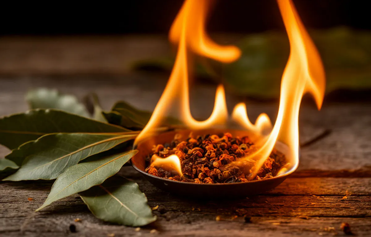 Сам процесс прост и доступен каждому. Достаточно лишь подготовить несколько сушёных лавровых листьев и разжечь их на устойчивой к высокой температуре поверхности. Это может быть керамическое блюдце, металлическая подставка или даже специальное приспособление для тления. После поджигания лист не нужно оставлять в огне надолго — важно, чтобы он не сгорел полностью, а начал медленно тлеть. В течение нескольких минут комната наполнится характерным ароматом, сочетающим в себе древесные и пряные нотки. Глубокие вдохи не требуются — достаточно просто присутствовать в помещении, где тлеет лист, чтобы ощутить его действие.