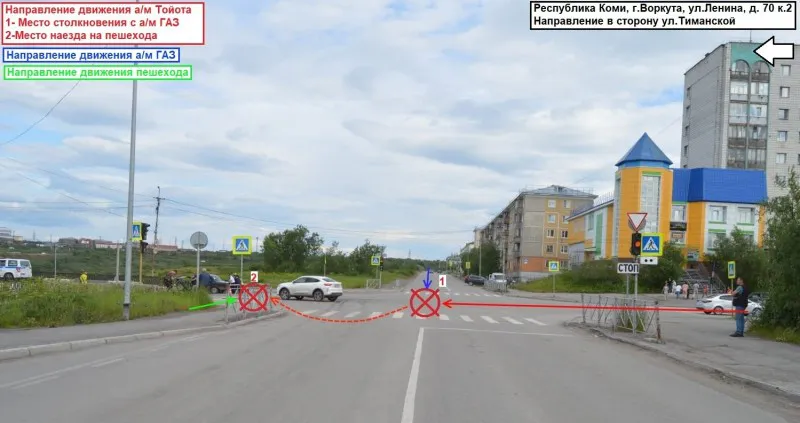 По предварительным данным, женщина за рулем Toyota Land Cruiser проехала на красный сигнал светофора со стороны ул. Ленина. В этот момент автомобиль столкнулся с ГАЗ-3102 "Волга", за рулем которого находился мужчина 1975 года рождения. Водитель ГАЗ-3102 двигался по ул. Тиманской на разрешающий сигнал светофора. Сила столкновения была значительной, что привело к дальнейшим серьезным последствиям.