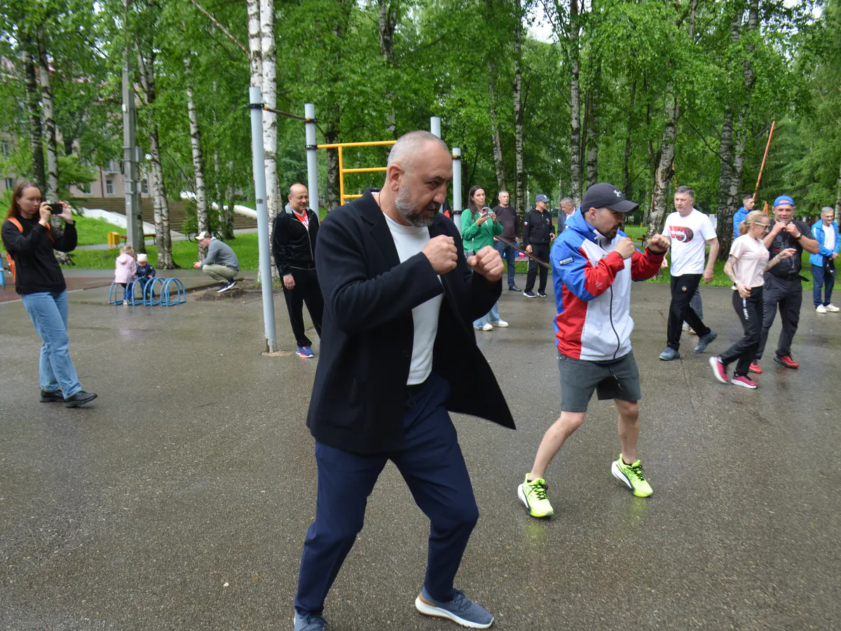 Несмотря на дождливую погоду 29 июня в Кировском парке было многолюдно. Особенностью этой встречи стало участие легендарных спортсменов – олимпийского чемпиона Александра Лебзяка, чемпиона Европы Андрея Баланова и мастера спорта международного класса Ахмедхана Адилова.
